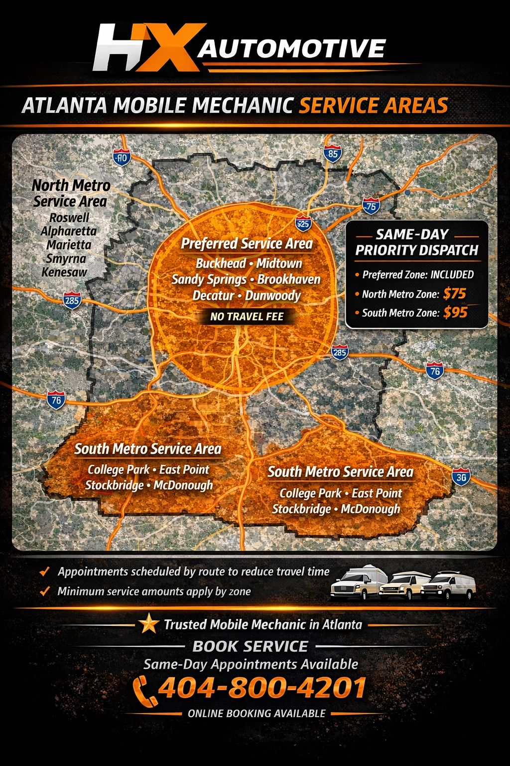 HX Automotive provides professional mobile auto repair services throughout the Atlanta metro area, helping drivers avoid expensive towing and long wait times at traditional repair shops